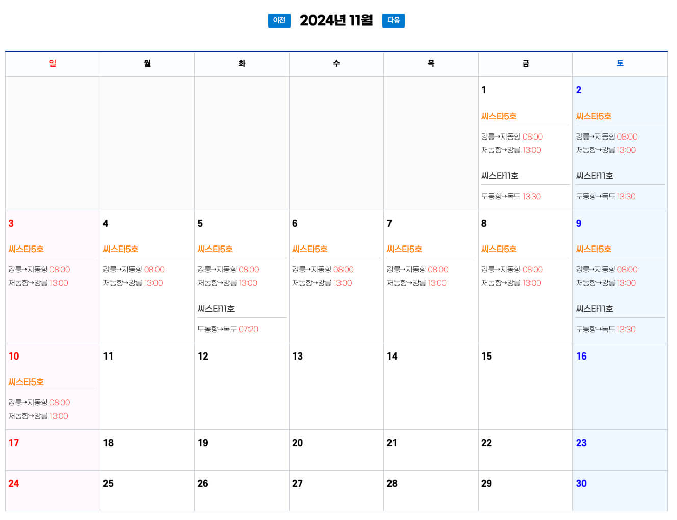 위 사진에 시간표는 2024년 11월 기준이며, 날씨에 따라 변동될 수 있기에 위에 안내드린 링크로 꼭 최신 시간표 확인하시기 추천드립니다.